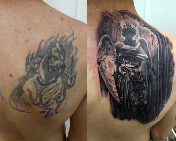 Есть два основных типа перекрытия тату. Первый – переделка основания неудавшейся татуировки. Мастер берет за основу существующий рисунок и делает его красивее с помощью более удачных линий и работы с цветом, и, таким образом, уродливая и плохо сделанная татуировка превращается в довольно привлекательную. Второй тип заключается в абсолютном уничтожении старого рисунка путем полной маскировки и перекрытия его качественно новым.