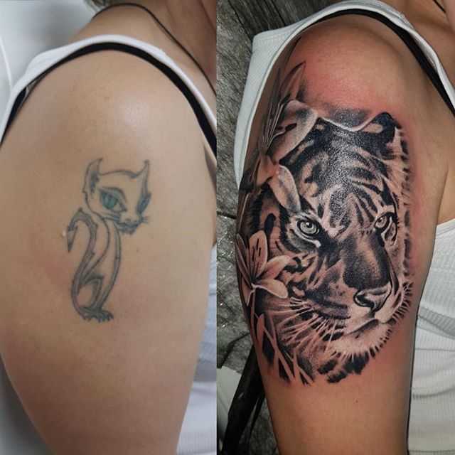 А какой у вас был опыт с перекрытием татуировок? Вам нравится новый рисунок?