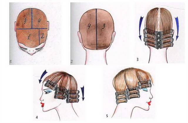 - Отделение прядей зигзагом. Направление накручивания волос — от лица.