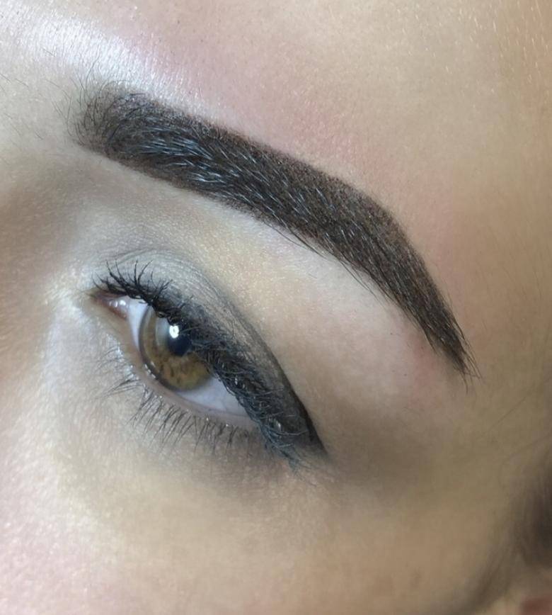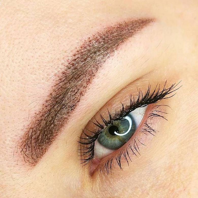 Пудровый эффект. Такие брови считаются самыми натуральными и естественными, поскольку кажется, что они прокрашены карандашом или помадкой, но никак не вытатуированы.