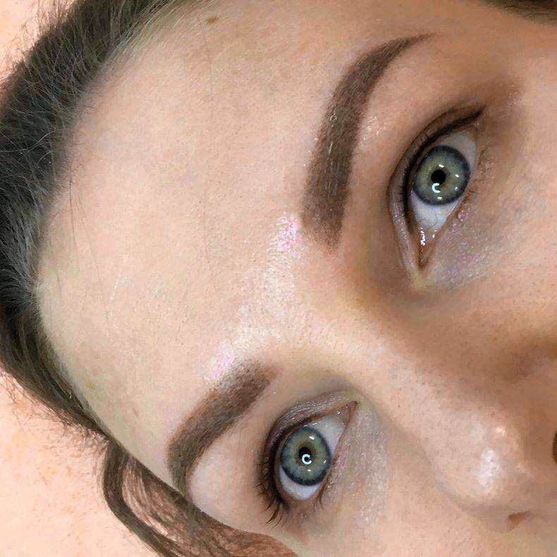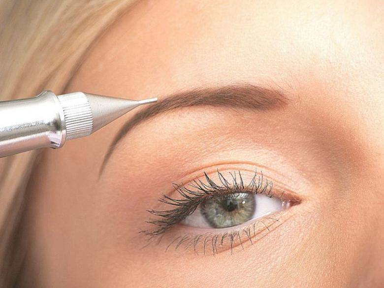 Эта техника также называется «напыление», поскольку эффект очень нежный и аккуратный. Краска вбивается только в верхний слой кожи, там растушевывается. Результат можно достичь за час, при этом эффект держится порядка трех лет, до этого коррекция не требуется.