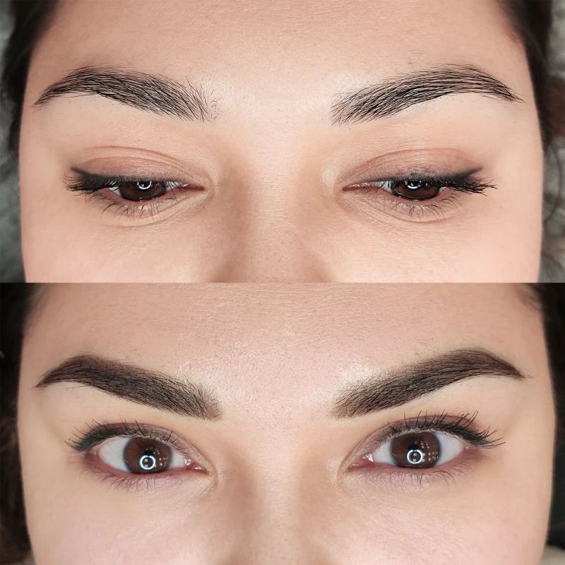 Этот метод не очень подходит клиенткам, природную форму бровей которых нужно корректировать, так как пигментные «волоски» визуально заметно отличаются от натуральных, создавая немного неряшливый вид бровей.