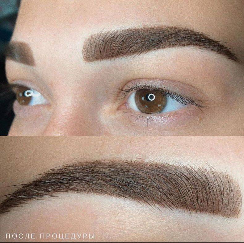 Он сочетает в себе сразу несколько техник для достижения максимально натурального и естественного результата – волосковый и растушевочный. Техника выполняется без контуров, то есть просто заполняется бровь, нет четко выраженных границ. Это позволяет добиться выразительного эффекта, максимальной густоты, фото до и после можно посмотреть в нашем обзоре