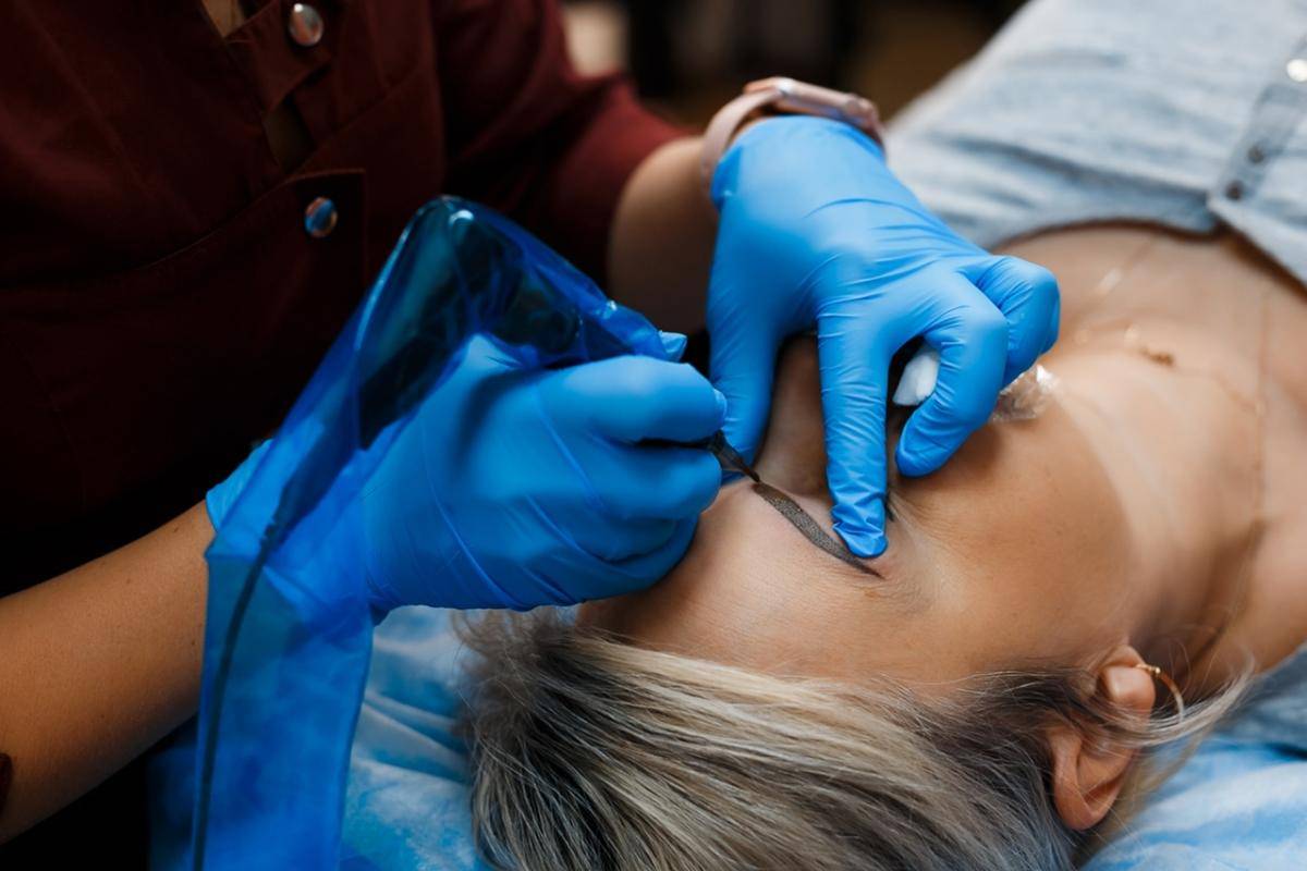 Перманентный макияж выполняется специальным аппаратом, рабочий инструмент которого оснащается одноразовой иглой и дюзой – маленьким резервуаром для красящего пигмента. Нужно попросить мастера непосредственно перед процедурой на ваших глазах распечатать новые рабочие элементы, а сразу после работы их выбросить. Это же касается одноразовых резиновых перчаток, которые должны быть на руках у мастера. Это важный момент – так как делают пациенту проколы кожи, повторное использование игл и перчаток категорически запрещено.