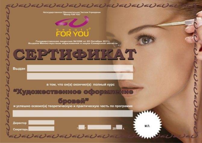 Лучше, если курсы пройдены в разных направлениях, например: колористика (подбор цвета), архитектура бровей, различные техники татуажа и т.д.