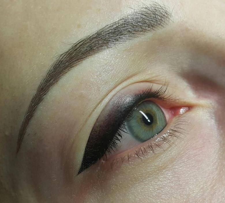 Данный вид перманентного макияжа довольно сложный, так как предполагает цветовые переходы. В свою очередь это позволяет удлинить глаза или придать им округлости, а также скрыть недостатки, такие как рубцы.