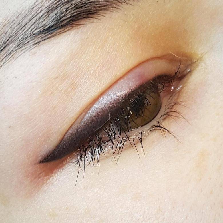 Что касается нанесения цвета, то эта технология предполагает, что веко окрашивается пигментом, который во внешних уголках растягивается широкой иголкой. То есть во внутреннем уголке идет тонкая стрелка, которая постепенно становится шире, но при этом выглядит мягко. Получается своеобразный эффект нанесения теней. Смотрится это очень красиво, но если выбрать темный оттенок, это может мешать в создании нейтрального макияжа глаз.