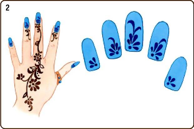 Для тех, кто не хочет рисковать своим здоровьем, существует техника биотатуировки с применением натуральной хны. Это довольно простой и доступный вид декора, и при умелом использовании может стать отличным дополнением для оригинального рисунка на ногтях.