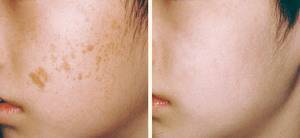 - В случае генетической предрасположенности удаление пигментных пятен на лице возможно лишь после применения специальных методик: химического пилинга, лечения лазером и микроволнами. К счастью, процент людей страдающих именно этим типом заболевания относительно низок.