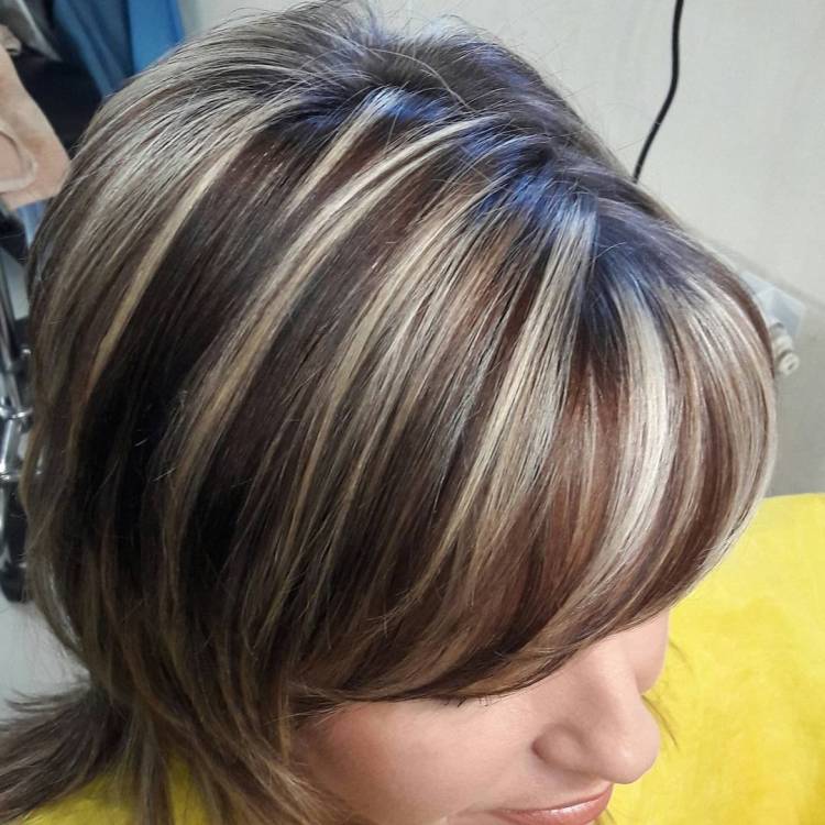 Для девушек с короткой стрижкой подойдёт продольное колорирование с небольшим количеством оттенков. Большим плюсом выполнения такого окрашивания является возможность видоизменять причёску в зависимости от укладки.