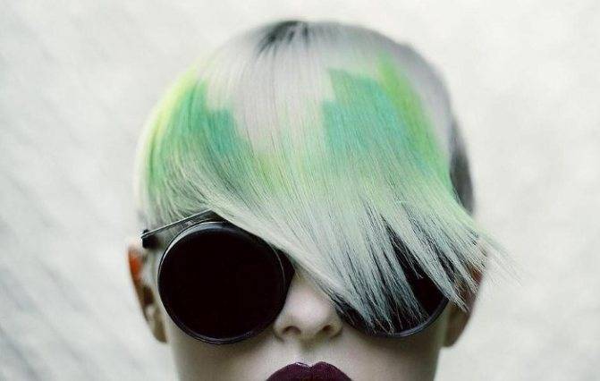 Каждый из нас когда-то играл в «Тетрис». Помните, как так выглядят фигурки, из которых нужно строить стену? Это квадратики, прямоугольники и фигуры нестандартных форм. То же самое красками наносится на волосы. Получается очень яркая и креативная прическа. С ней не стыдно отправиться на любую вечеринку. А если в таком виде пройтись по городу, то можно произвести настоящий фурор. Мужчины будут смотреть вам вслед, а дамы – завидовать по-доброму.