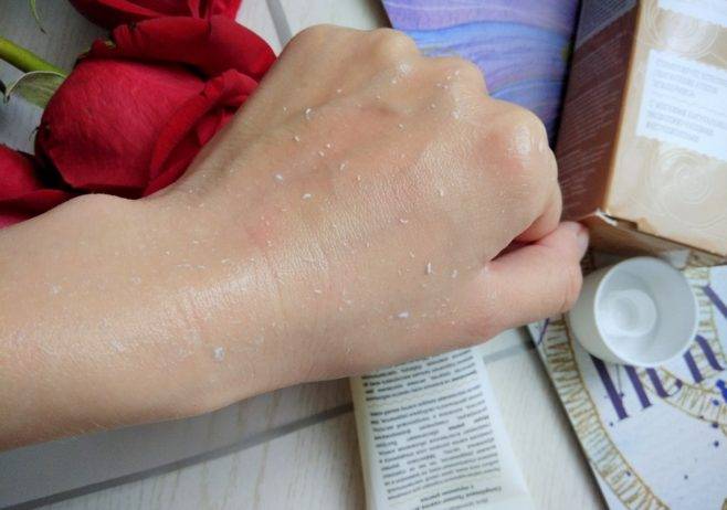 Образуются небольшие комочки, которые необходимо смыть. Скатка отшелушивает кожу, легко тонизирует.