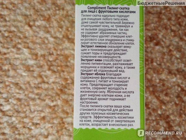 После первого применения хотела оценить в одну звезду из пяти. После укрощения строптивого, плюс низкую цену, ставлю четыре. В общем, могу рекомендовать к покупке. Бюджетно, но не без недостатков. Надеюсь в будущем купить идеальную версию пилинга-скатки от Compliment.