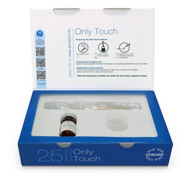 - Only Touch Peel. Концентрация раствора в этом средстве составляет 40%. Процедуры на основе данного препарата называются глубинным химическим пилингом, проводимым исключительно на определенных участках кожи тела.