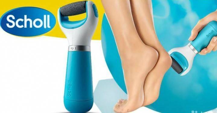 - Scholl Velvet Smooth (Шолль Велвет Смуз). Электрическая роликовая пилка для пяток аккуратно очищает стопы, убирая только мертвые ткани. Удобная и эффективная в эксплуатации.