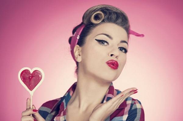Главное правило макияжа (акцент либо на глаза, либо на губы) здесь не работает. Пин-ап стиль предполагает сочетание ярких алых губ с выразительными стрелками на глазах и румянцем на щеках. Но старайтесь не переусердствовать. Удачные примеры – в нашей фотогалерее: