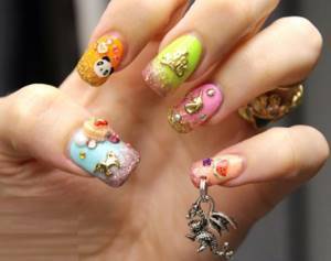 Фантазия в таком случае безгранична. Герои мультфильмов, книг, персонажи фильмов – все это можно найти среди украшений. Например, на свадьбу можно украсить ногти небольшими цветочками.