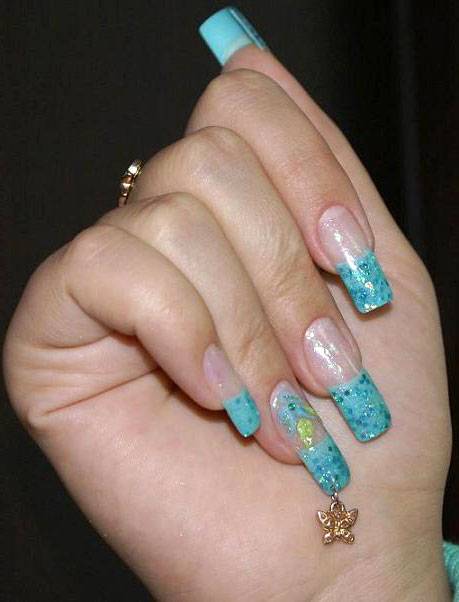 - очень популярны украшения, имеющие шпренгельный замок, который надежно скрепляет их с ногтем и так же легко снимается. Имея такой замочек, можно ежедневно менять подвески.