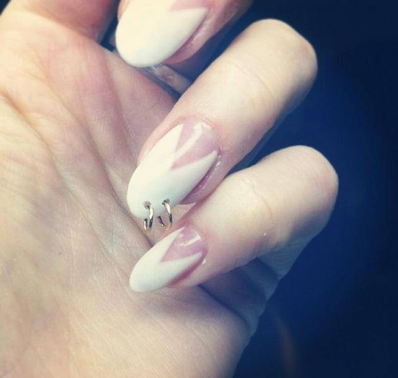 Элегантнее всего пирсинг смотрится в дуэте с французским маникюром либо просто с маникюром в светлых тонах