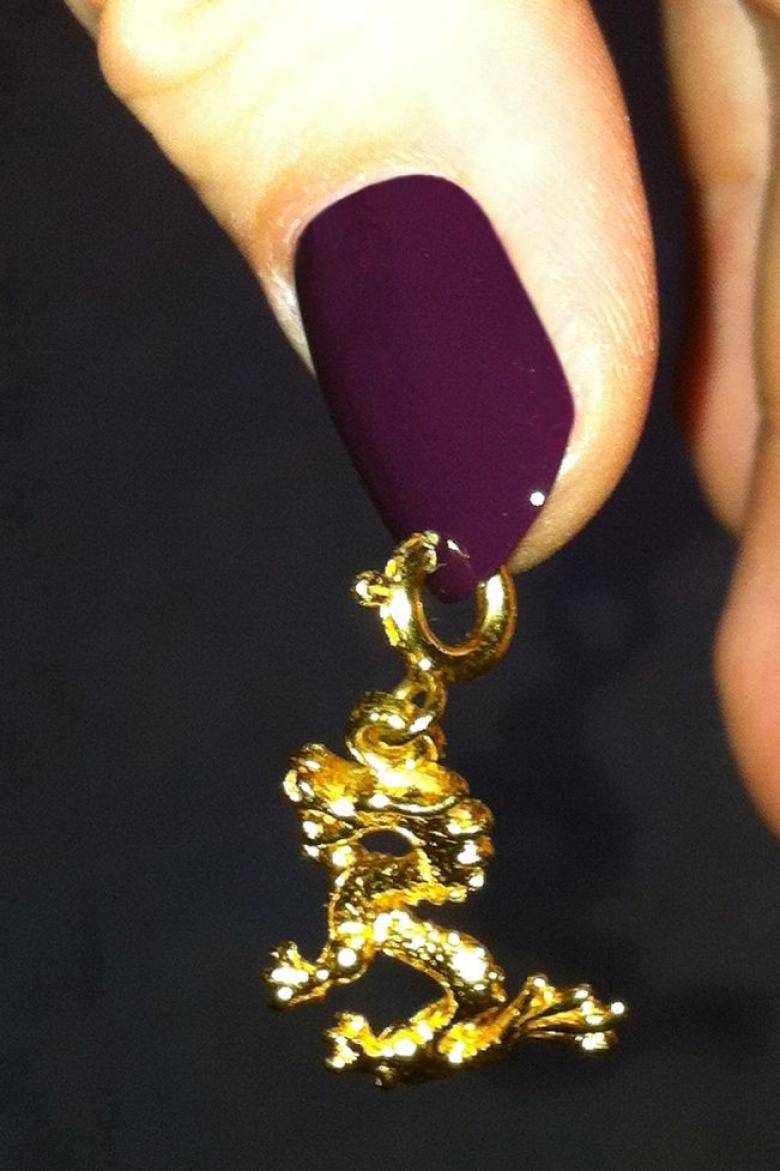 - Затем само украшение продеть через ноготь. Зафиксировать и зажать щипцами основное кольцо.