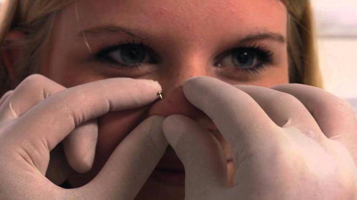 Перед тем как вставить новую бижутерию ее обрабатывают дезинфицирующим раствором. В том случае, если прокол сделан в крыльях носа или в его кончике вставлять украшение нужно задерживая дыхание, иначе возможно попадание украшения в носовые ходы.