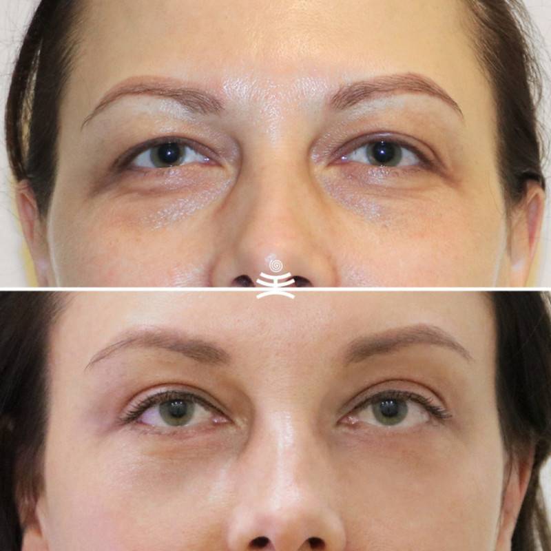- Коррекция нижнего века без удаления жировой прослойки. Нужная форма достигается за счет перераспределения жировых депо.
