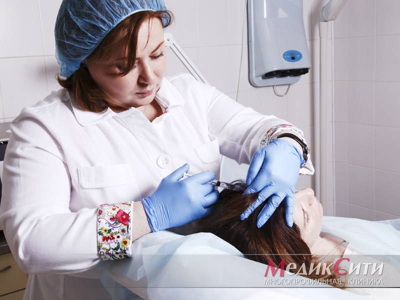 - После этого доктор приступает к процедуре. Он вводит уколы аутоплазмы в эпидермис головы. Если пациент ощущает сильную боль, то врач использует анестезирующее средство.