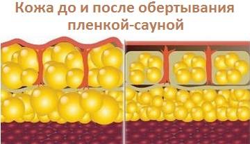 После нанесения на покров кожи компонентов, которые призваны стимулировать похудение и глубоко проникать в дерму, делают обвертывание пленкой.