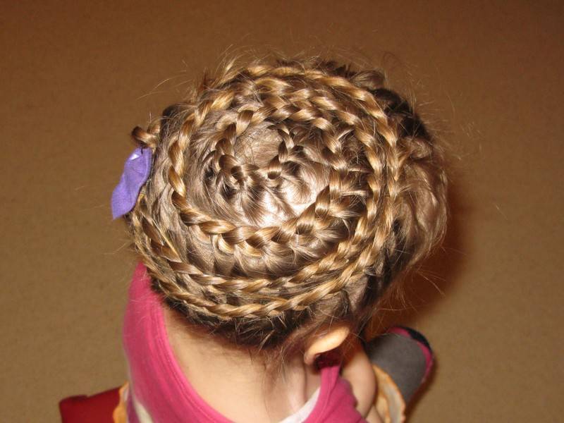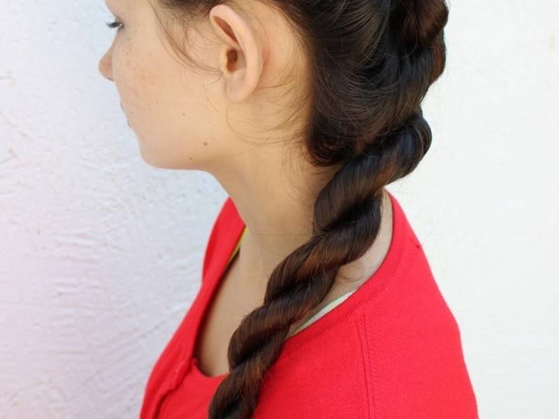 - косы-веревки: на волосах делается косой пробор, и плетение (закручивание двух небольших прядей) начинается с той стороны, где больше волос; при прохождении такой косы вокруг головы добавляются новые небольшие прядки; на уровне затылка она перевивается с основной массой волос в направлении, противоположном основному плетению;
