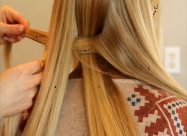 Техника выполнения сложных кос достаточно трудоемкая, но зато результат превзойдет все ожидания. Для освоения можно использовать любой вариант и даже попробовать плетение на свободных волосах, не затрагивая область головы. Для этого должна быть схема, описания шагов, фото и самое главное – желание. Для удобства пряди мысленно нужно пронумеровать.