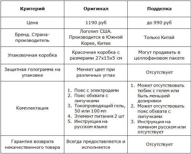 Чтобы не потратить деньги зря, можете воспользоваться таблицей отличий оригинального товара от контрафакции.