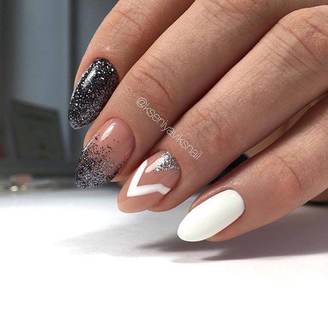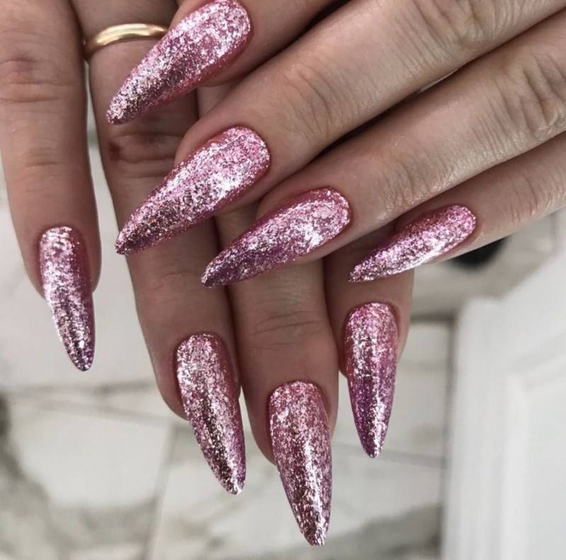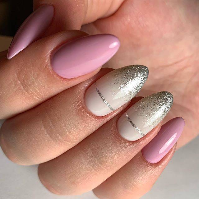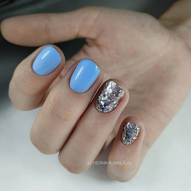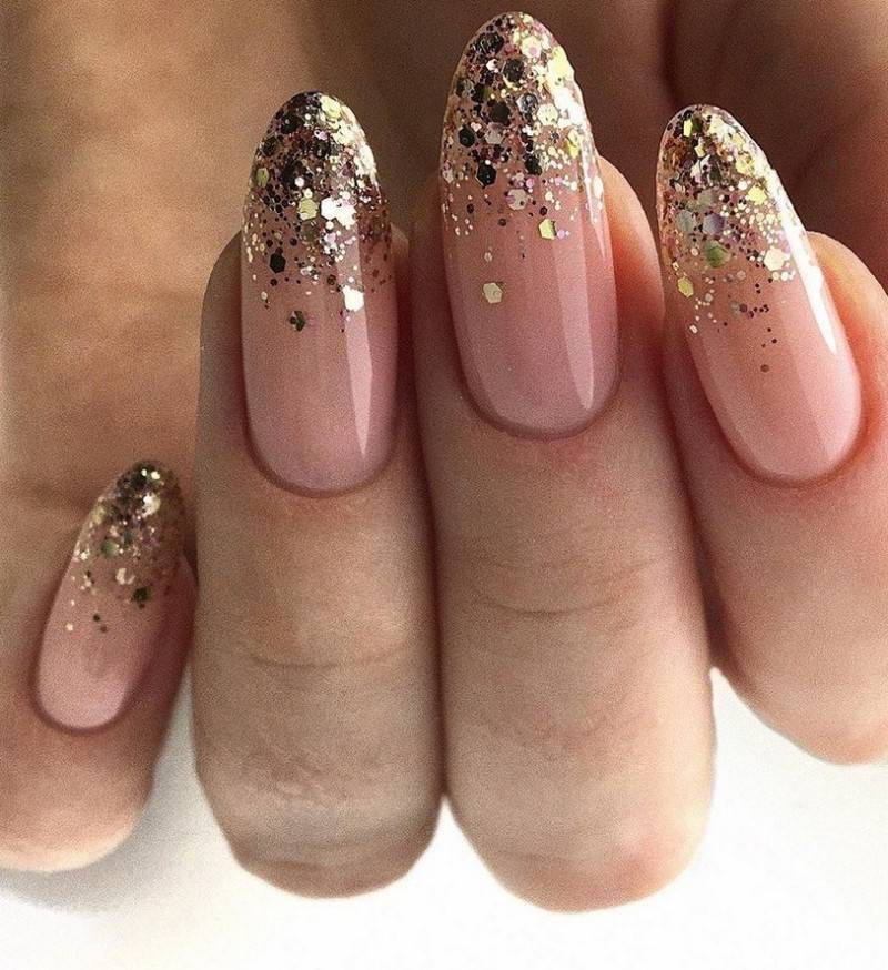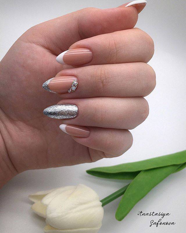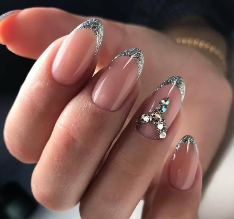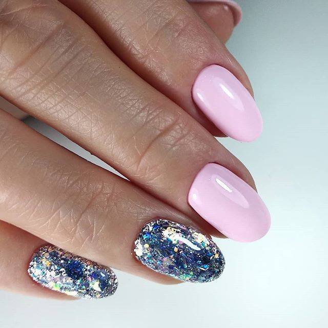 Варианты дизайна маникюра с блёстками на разную длину и форму ногтей