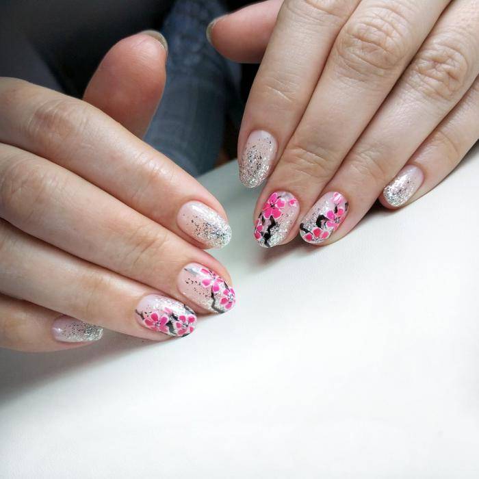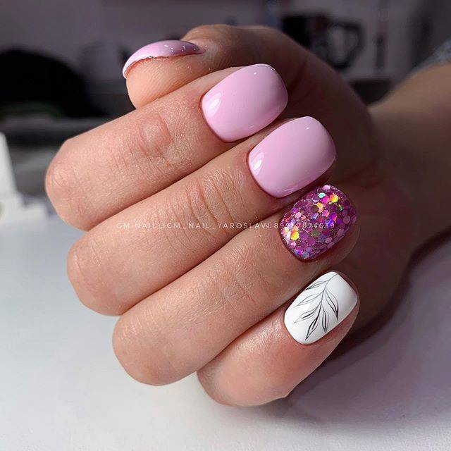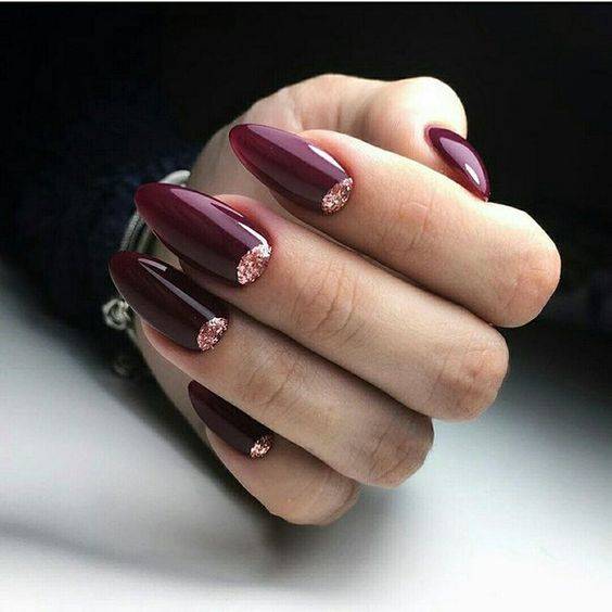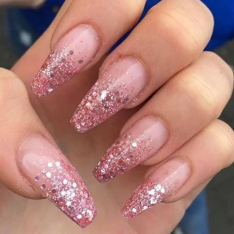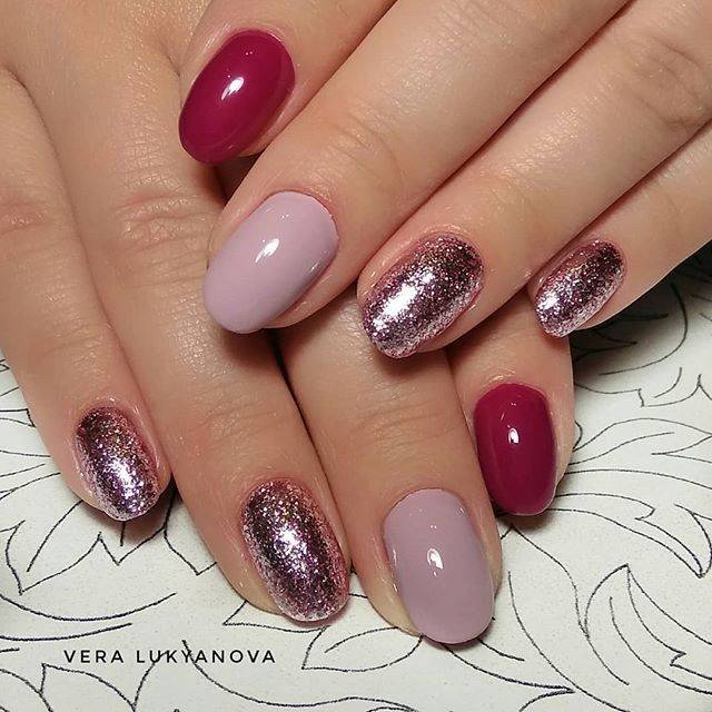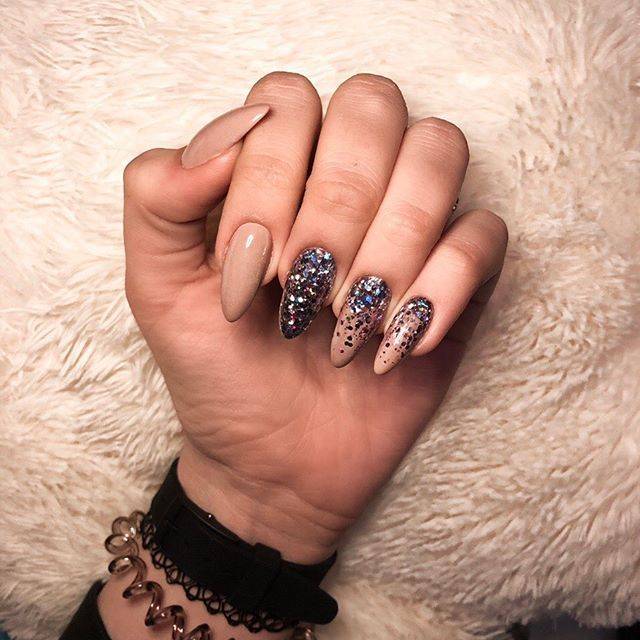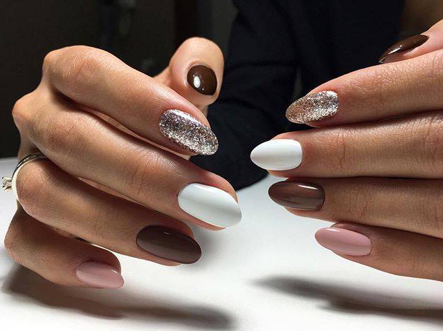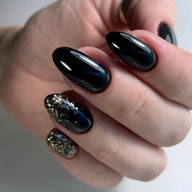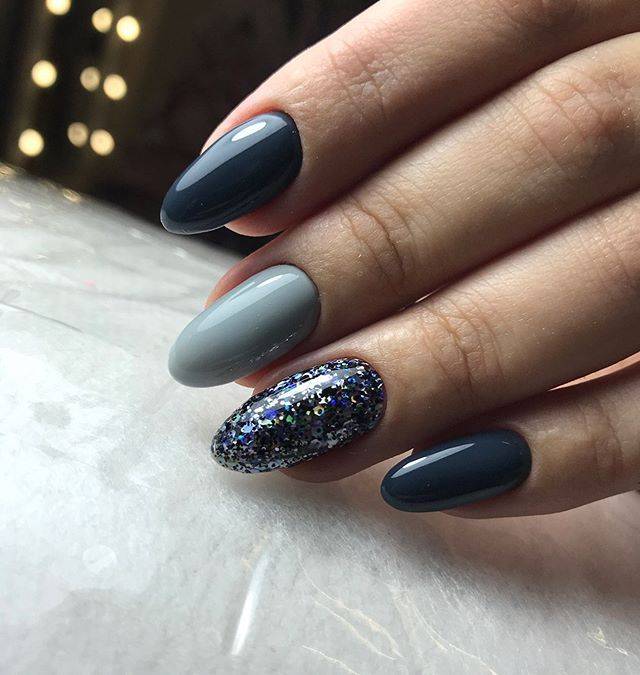Варианты дизайна маникюра с блёстками на разную длину и форму ногтей