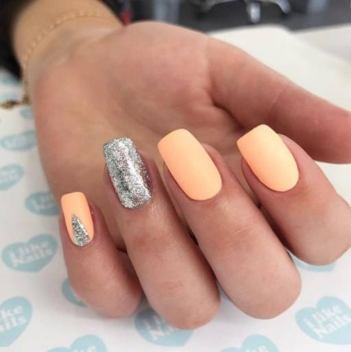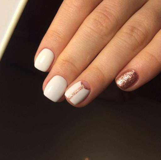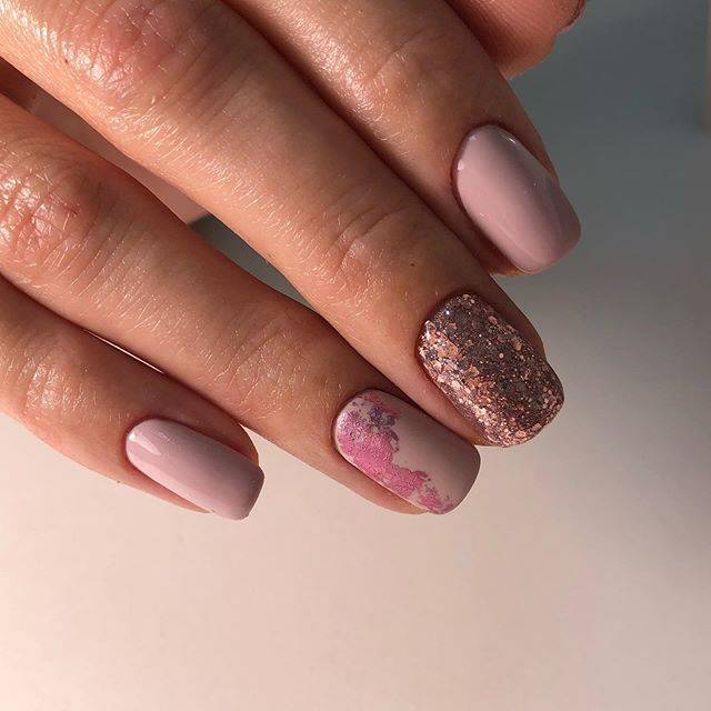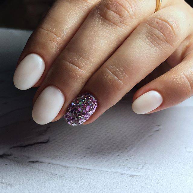 5. Микроглиттер на акцентном ногте. Если вы предпочитаете более нежный и лаконичный дизайн, нанесите микроглиттер на один ноготь, оставив остальные ногти однотонными. Это добавит некоторую игривость и элегантность вашему маникюру.