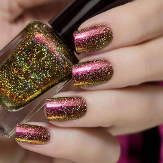 1. Градиентный эффект. Создайте градиентный эффект, нанеся глиттер на ногти разной интенсивности. Начните с яркого и насыщенного цвета у основания ногтя, постепенно переходя к светлому и блестящему глиттеру к кончику ногтя.