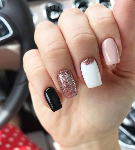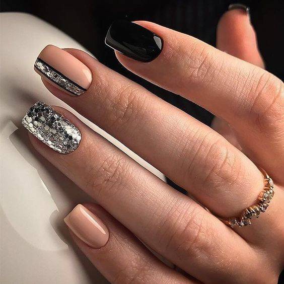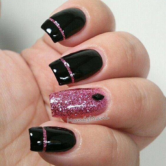Так, лаки красных, желтых и белых цветов и их оттенки гармонируют с черным глиттером.