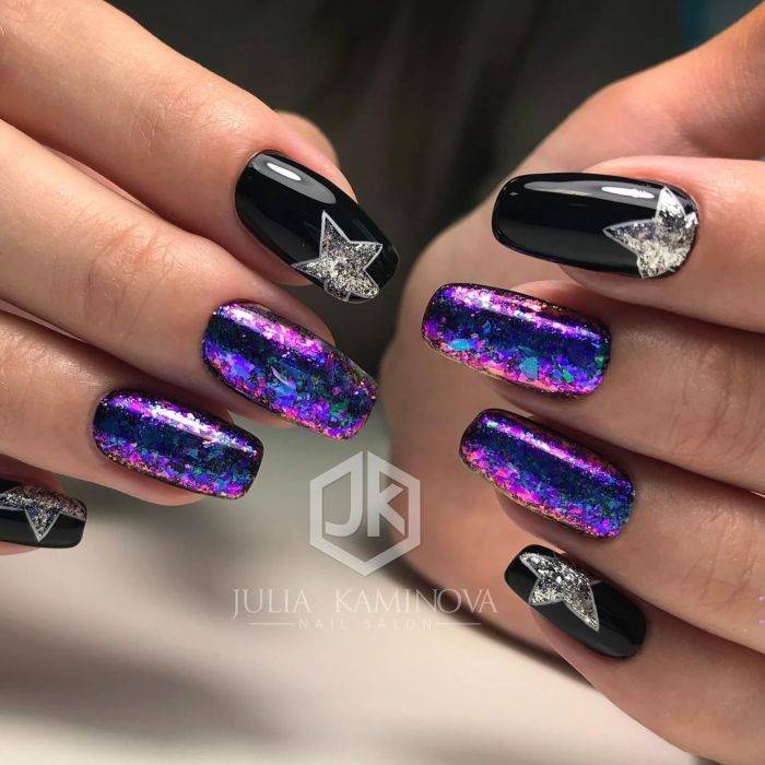 Маникюр с блестками 2024-2025: техники, неповторимые идеи дизайна
