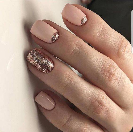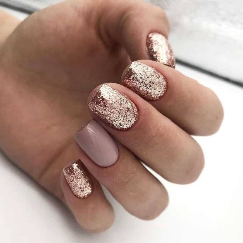 Для создания такого маникюра можно использовать глиттер любого оттенка, от нежного и светлого до яркого и насыщенного