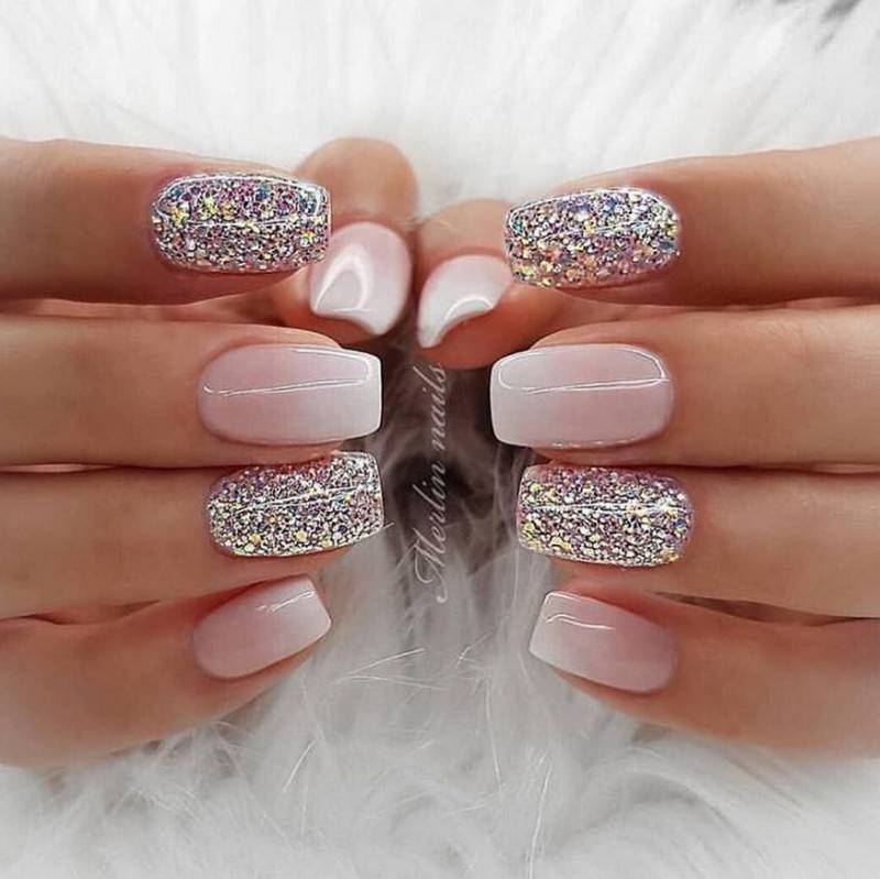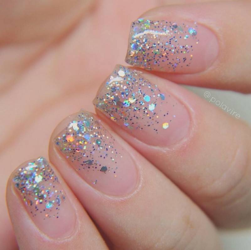 Mодный маникюр с рассыпчатым прозрачным глиттером
