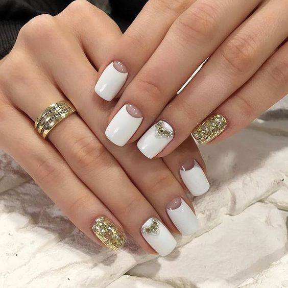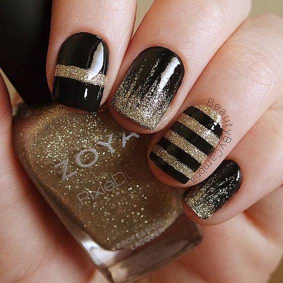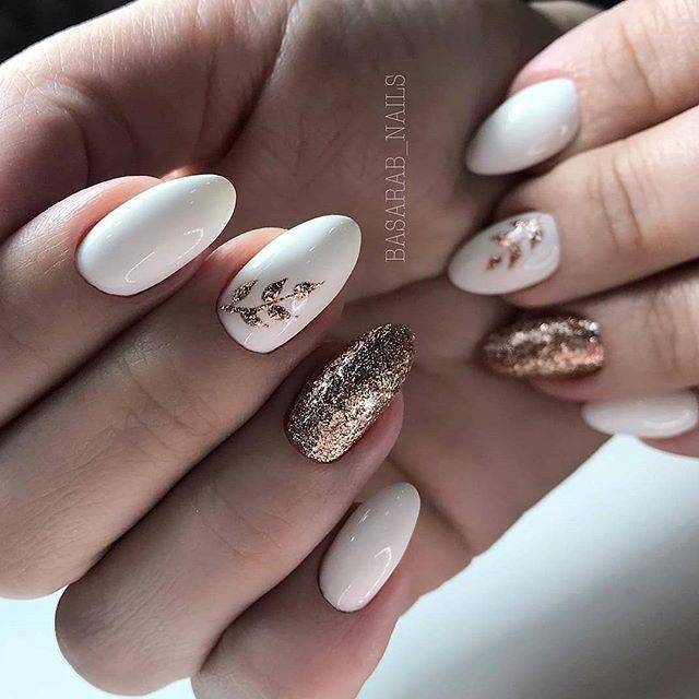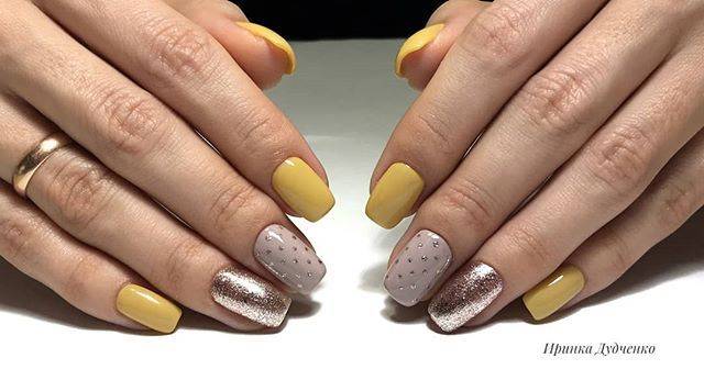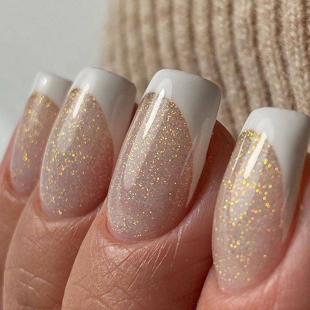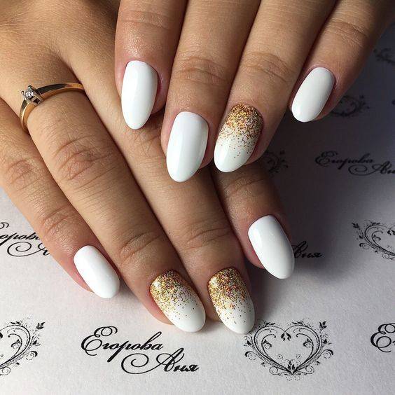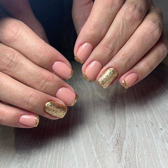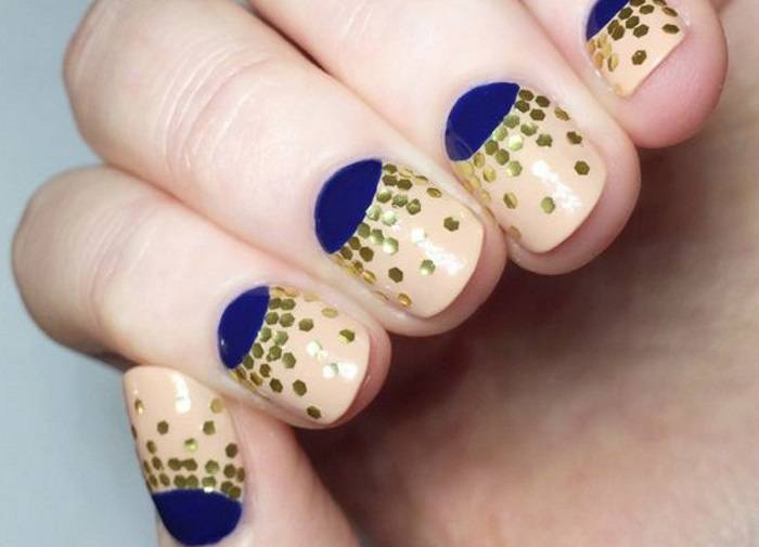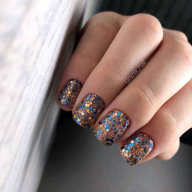 Золотые блестки хорошо сочетаются со всеми цветами и являются самым беспроигрышным вариантом.