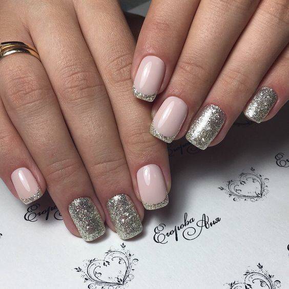 3. Френч с глиттером. Один из способов использования глиттера – это дополнить обычный френч ногтей блестящей полоской глиттера. Вы можете выбрать глиттер в цвете, который отличается от основного лака, что позволит создать контрастный дизайн.