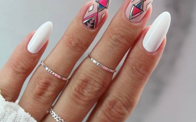 В течение нескольких лет ногтевой дизайн с нарисованными или выложенными геометрическими фигурами бьет все рекорды по популярности. Стильная, универсальная техника открывает перед модницами простор для фантазии, дает возможность без труда подбирать подходящие сюжеты под любой характер, цветотип кожи, внешний вид. В моде самые разные варианты: