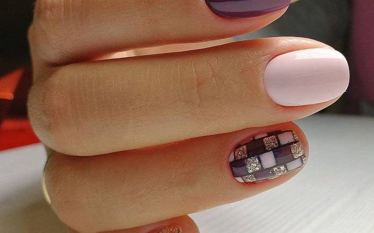 - «колор блокинг» с 3-7 цветными лаками, в виде своеобразной мозаики. Причем фигуры могут быть как простыми, так и причудливо изломанными;