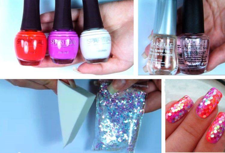 Маникюр с блестками: техника выполнения (фото пошагово)