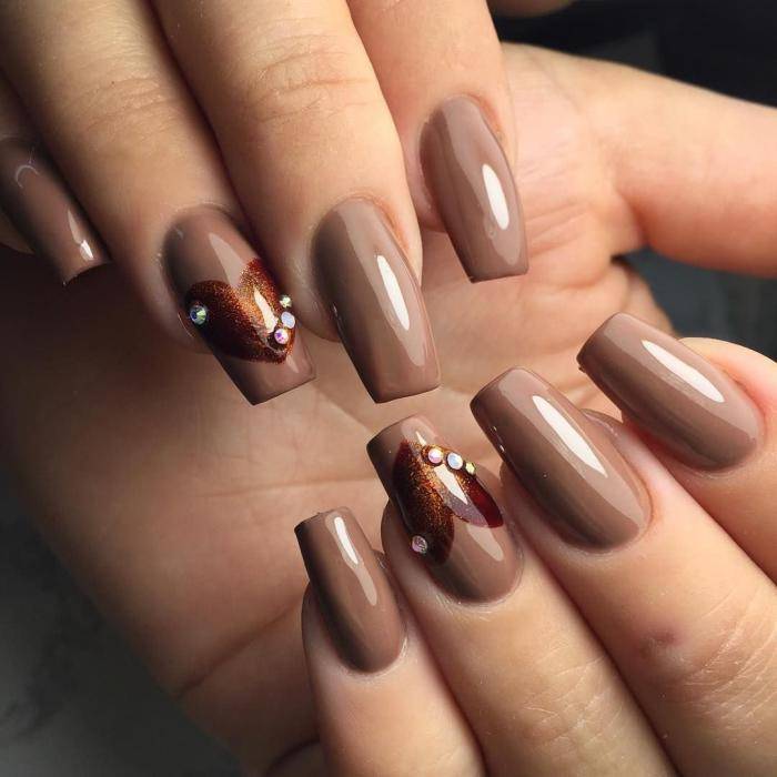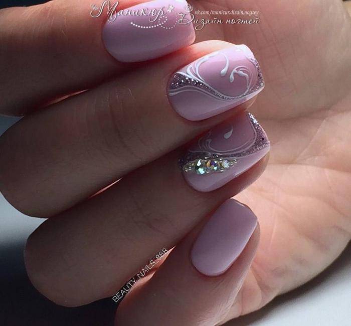 Так же добавьте так же немного блесток или парочку страз. Заняв свое достойное место, например, на ногте безымянного пальца, дополнительные украшения привнесут в ваш образ больше уникальности! Главное правило здесь – не переборщить!