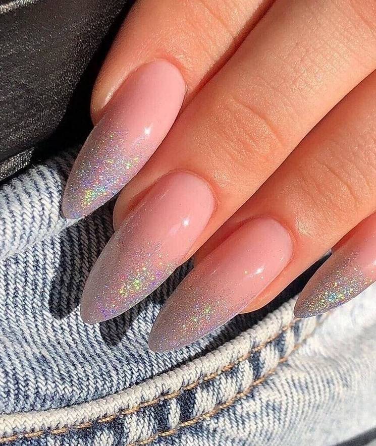 4. Омбре-эффект. Создайте омбре-эффект, нанося глиттер на ногти разной интенсивности. Начните с мелкого глиттера у основания ногтя и постепенно переходите к крупному и блестящему глиттеру к кончику ногтя.