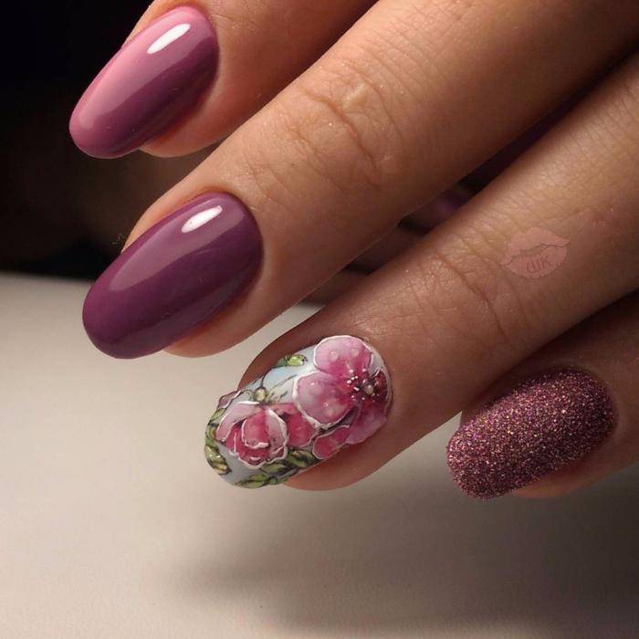 Не ограничивайтесь однотонными цветами – поиграйте оттенками! Например, плавно перетекающий нежно розовый в темный цвет фуксии, будет элегантно смотреться на пальчиках юной леди.