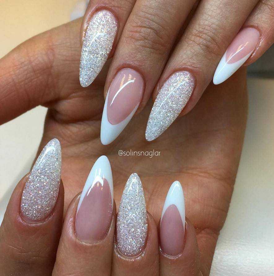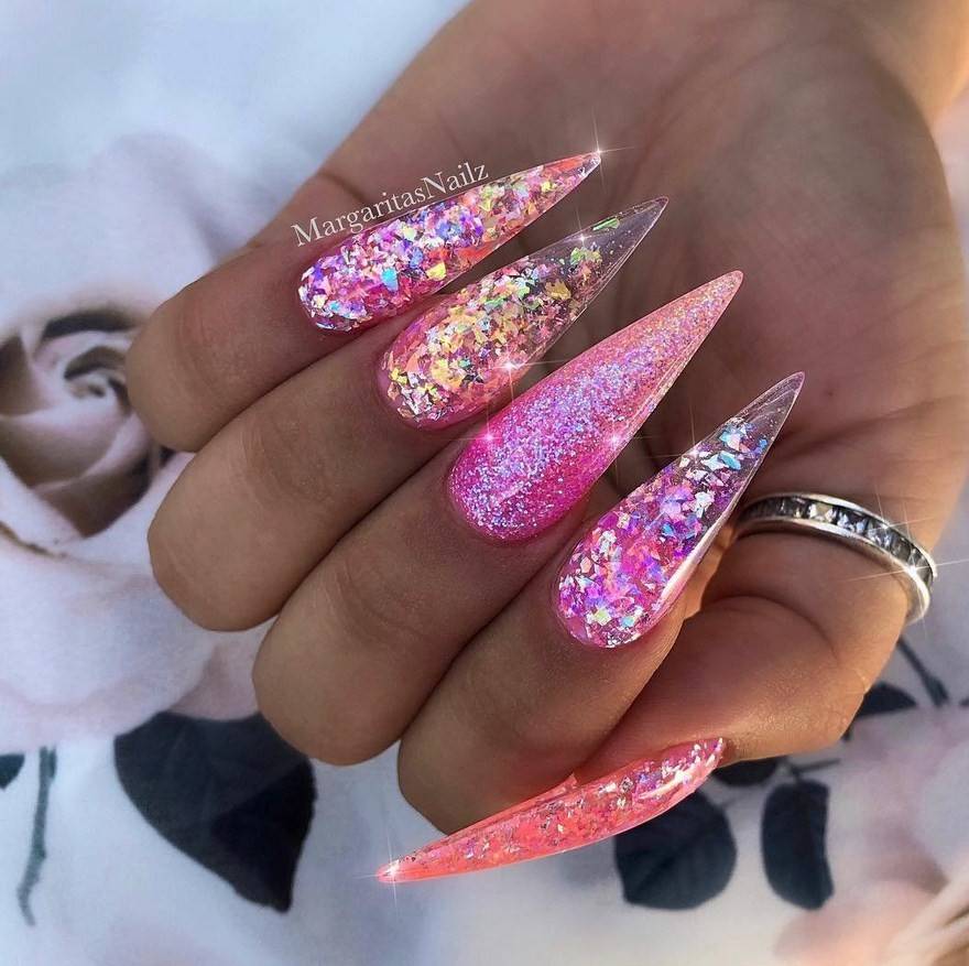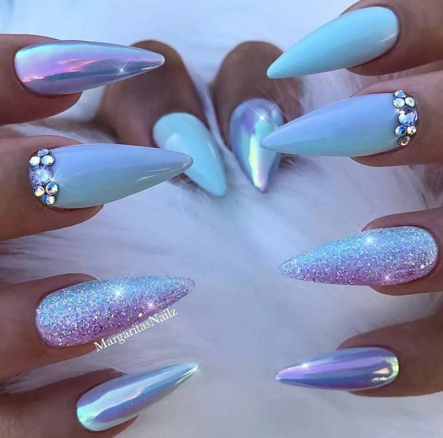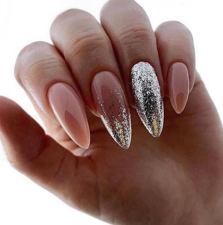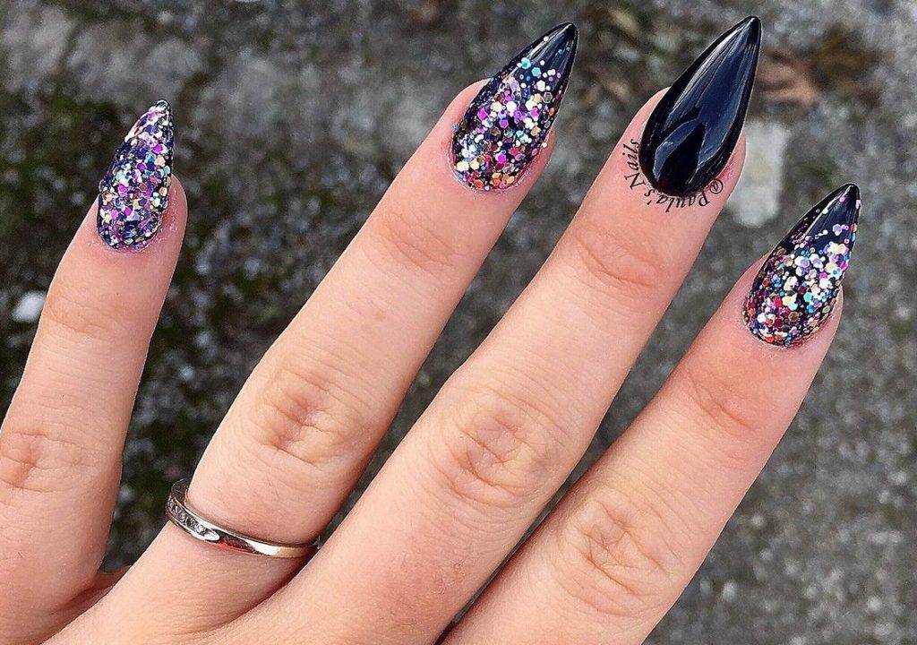 Варианты дизайна маникюра с блёстками на разную длину и форму ногтей