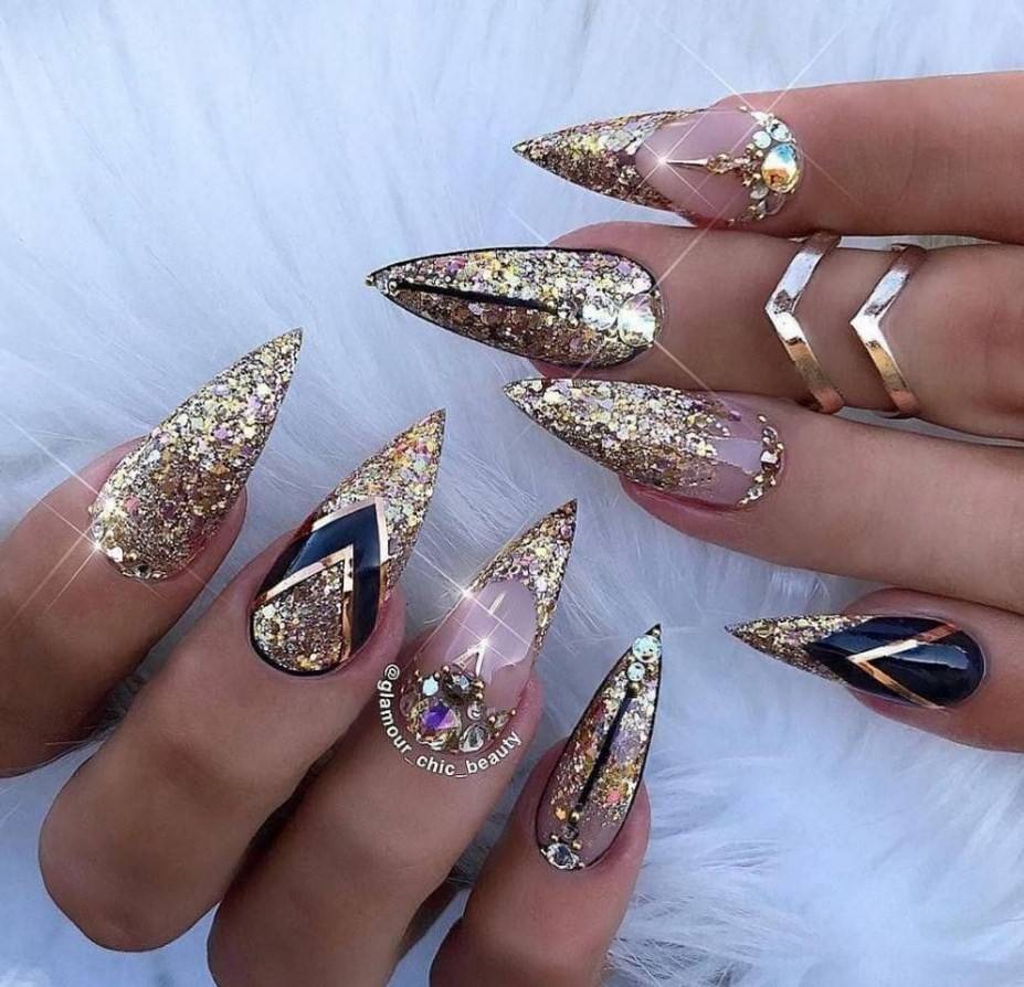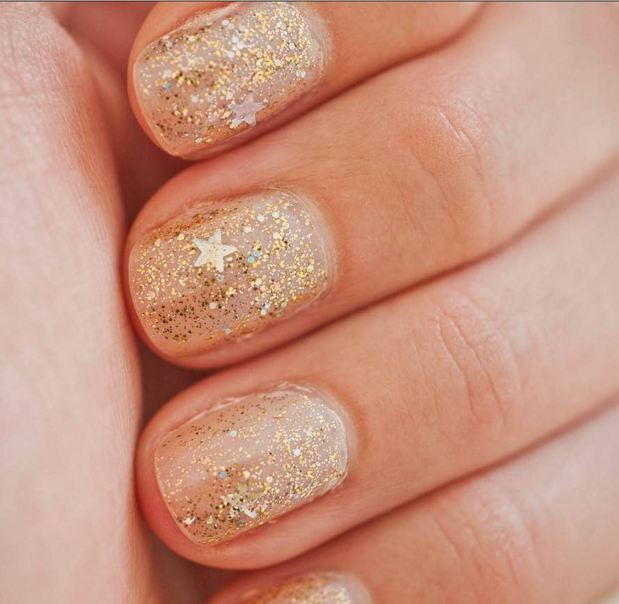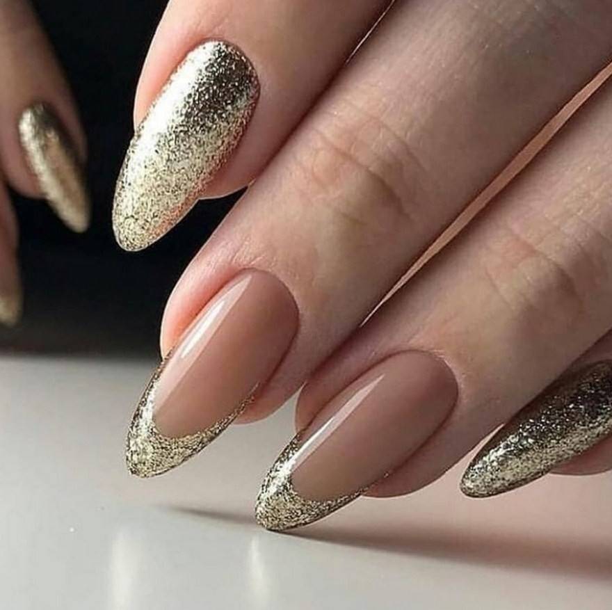 Золотые блестки хорошо сочетаются со всеми цветами и являются самым беспроигрышным вариантом.