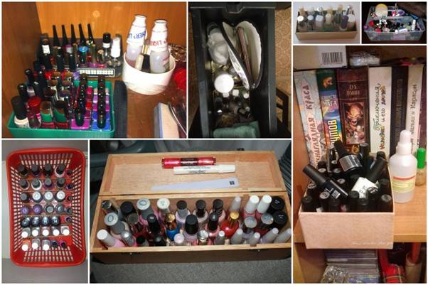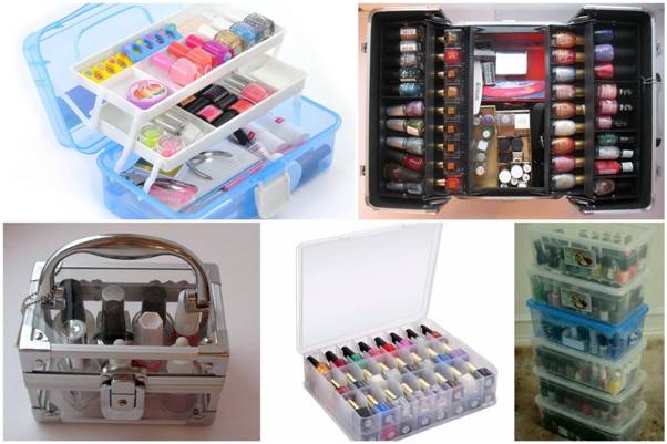 Сегодня существует множество различных «хранилищ» для флаконов с лаками: от самых простых (одноуровневая подставка) до самых сложных (например, комод или чемодан). Все они отличаются не только дизайном, но и вместимостью. При выборе того или иного аксессуара необходимо ориентироваться на количество уже имеющихся лаков, учитывая пополнение коллекции в будущем.